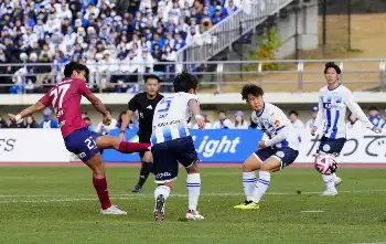 前半31分、FW一美がペナルティーエリア内でボールをキープし、右サイドから上がってきたMF本山へパス。本山は右足で巧みにトラップしてすかさず右足を振り抜き、ゴール左下を射貫いた。