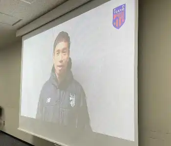 明大サッカー部Jリーグ内定者会見 OBの長友佑都が動画でサプライズ登場
