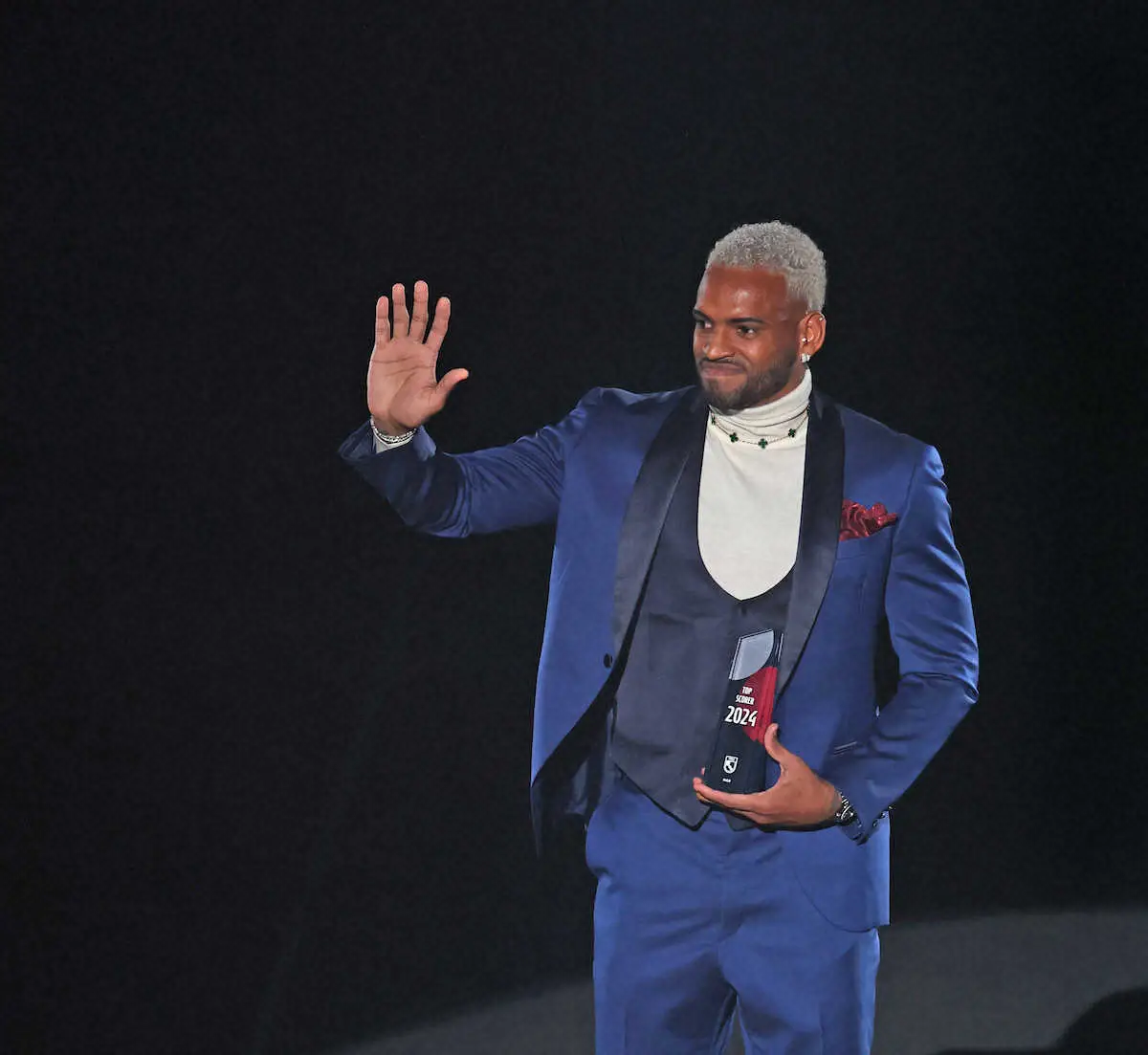<2024Jリーグアウォーズ>得点王の表彰を受けた横浜・アンデルソン・ロペス(撮影・西海健太郎)