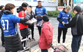 J1初挑戦3位の町田選手が商店街あいさつ回りで応援に感謝 MF下田北斗「タイトルを一つ取れれば」