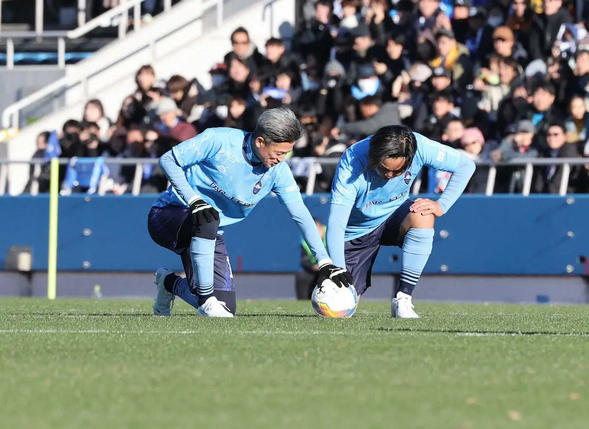 <松井大輔引退試合>記念撮影をする松井大輔氏(中央)ら選手たち(撮影・小海途 良幹) Photo by スポニチ 【松井大輔氏引退試合】名だたるレジェンドが伝説エピソードを披露 小野… ギャラリーで見る この記事のフォト 2024年12月15日の画像一覧 もっと見る 2024年12月15日の画像をもっと見る