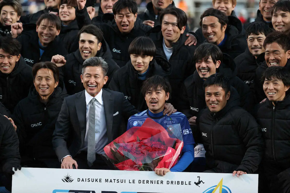 フランスリーグのル・マンや横浜FCなどでプレーした元日本代表MFの松井大輔氏(43)の引退試合が神奈川・三ツ沢で開催された。