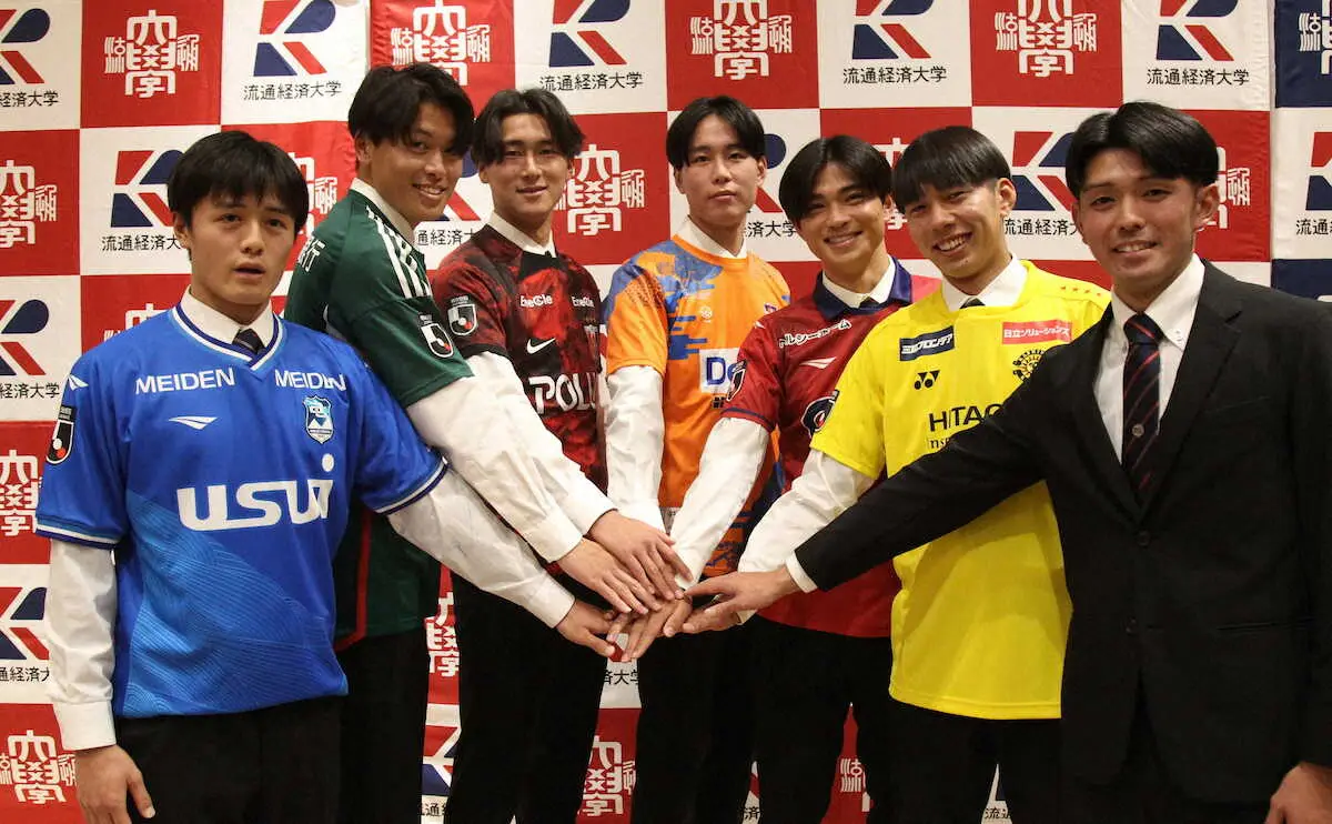 流通経大サッカー部は19日、流通経大柏高と合同でプロチーム加入内定者会見を行い、浦和内定のDF根本健太(22)は「開幕スタメンを獲れるように頑張りたい」と抱負を語った。
