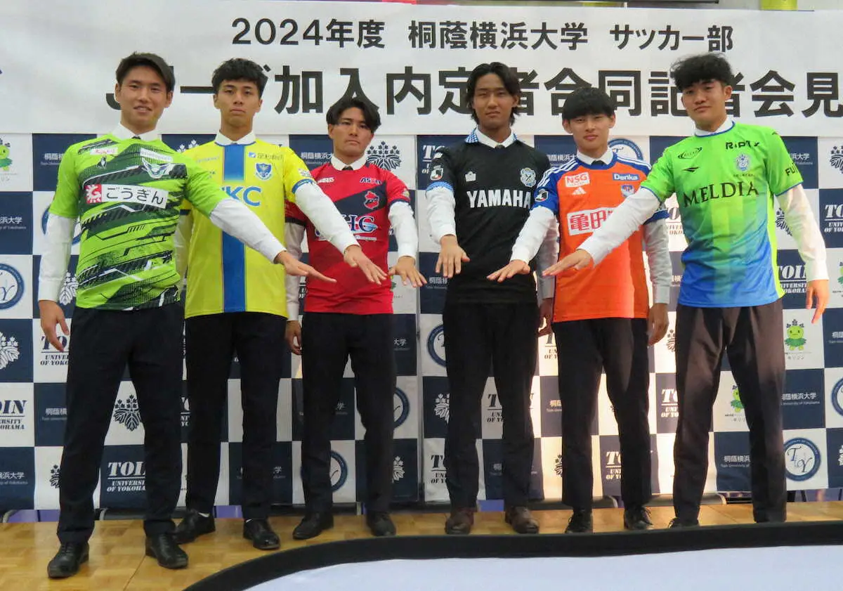 桐蔭横浜大サッカー部は23日、横浜市内のキャンパスでJリーグクラブへの加入内定・契約者による会見を行った。