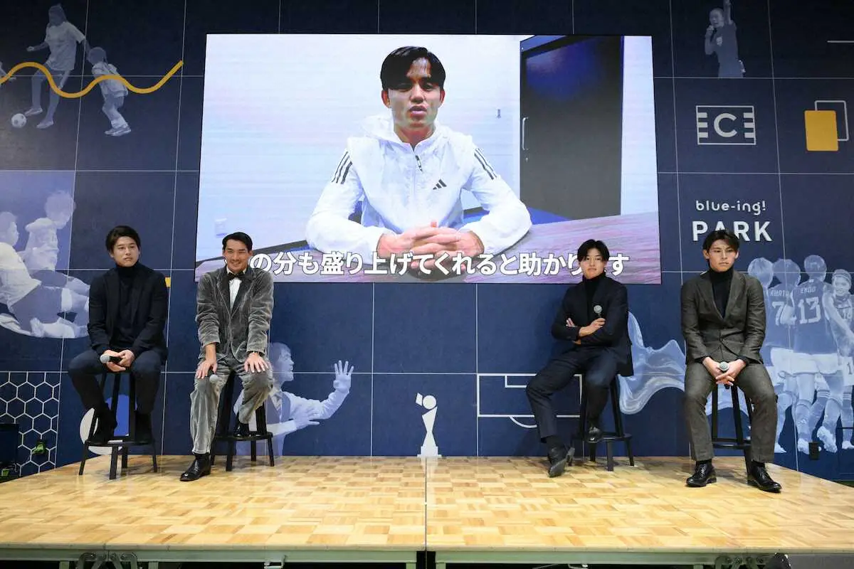 ビデオメッセージを寄せた久保は「チームも代表も浮き沈みがあったが、その波も楽しめる余裕があった。充実した一年だった」と1月のアジア杯から始まった一年を総括。自身が選ぶMVPにはクラブ、代表で不動の地位を築くスポルティングのMF守田英正(29)を挙げ「CLでも台風の目を巻き起こした。彼は代表でも中心選手でやっているし、チームでも一番の中心。飛躍の年だったと思う」と絶賛した。
