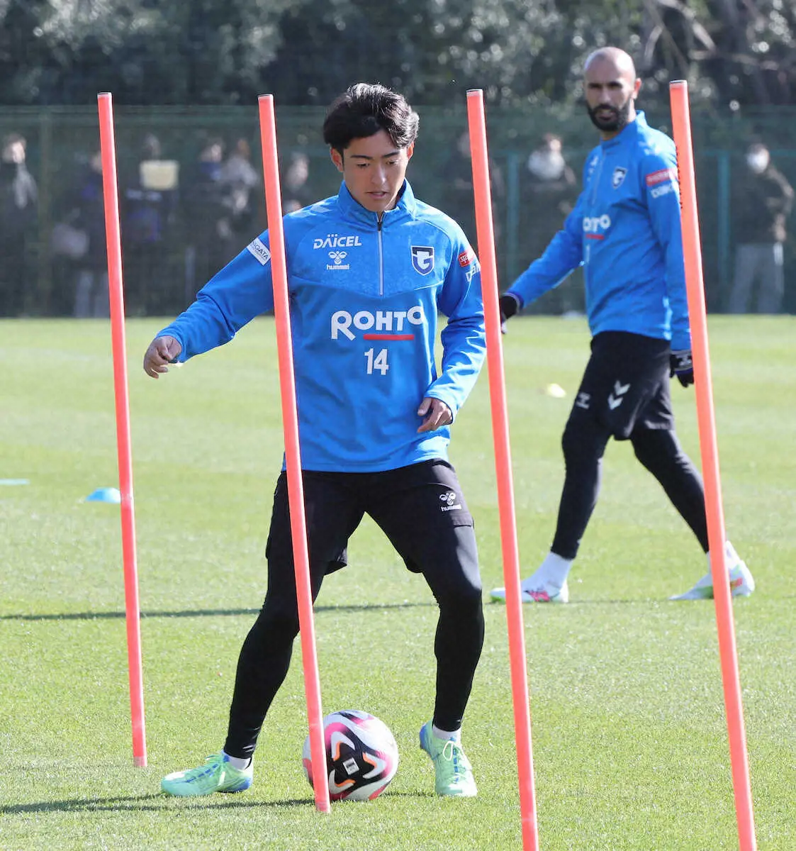 「1年目ですけど、しっかり2ケタゴールを狙ってその中でより多くの得点だったりアシストでチームに貢献して勝利をサポーターの皆さんと分かち合えるように頑張りたいと思います」。力強く締めてくれた背番号38。参考にしている選手はマンチェスターCのフィル・フォーデン(24)だという。多少、意表を突かれたが、狭いスペースをスルスルとドリブル突破していく姿と見事なターン技術。身長もほぼ同じ。「なるほどな」とうなずいてしまった。