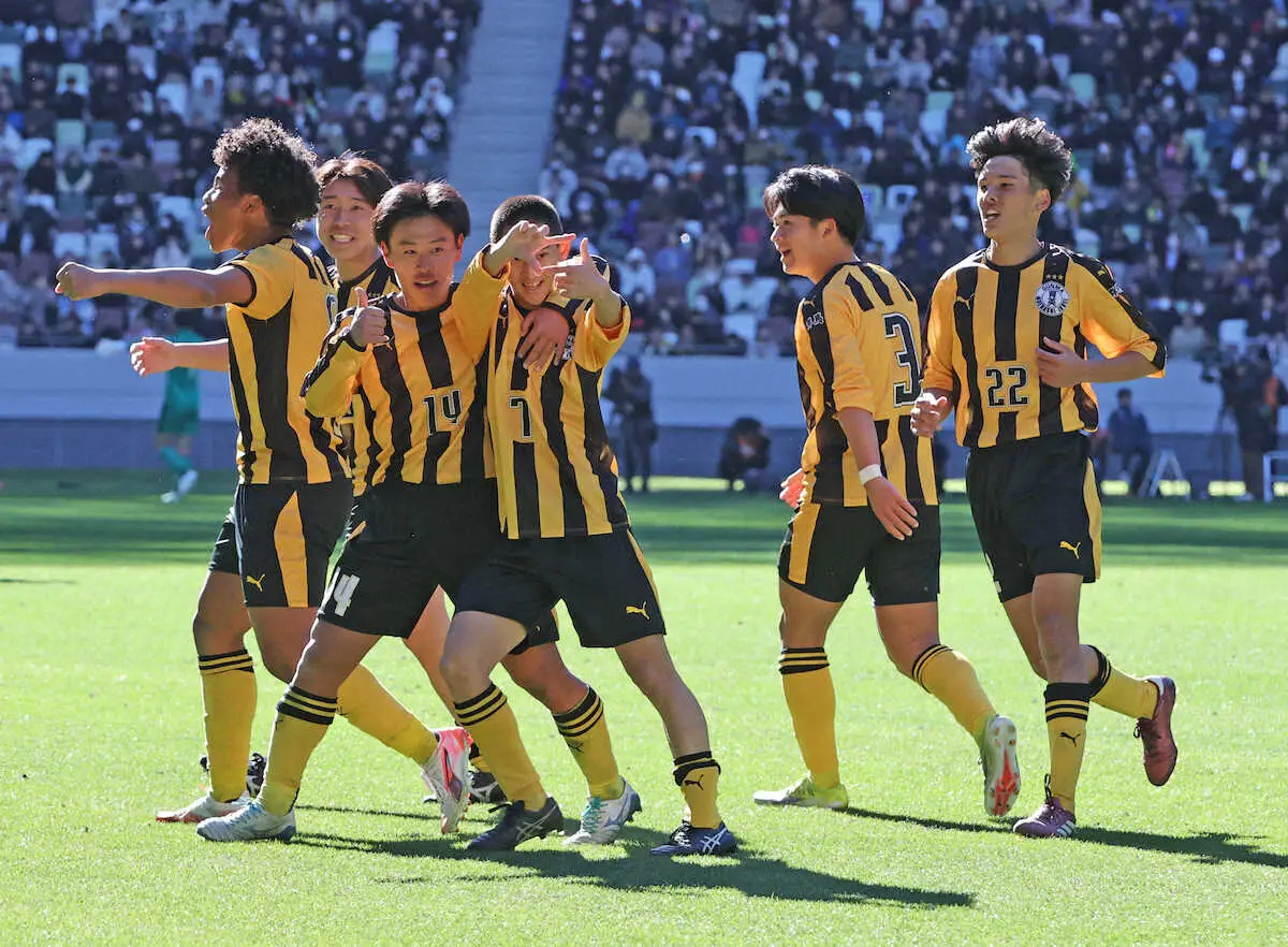 MF白井も追加点を挙げ、10分間の3得点で逆転勝ち。鹿児島実に並ぶ歴代7位タイの大会通算52勝目を手にした。埼スタ開催で3度の決勝進出があるものの、聖地国立では初白星だ。指導歴43年の山田耕介監督(65)は「いつも負けているので勝てて良かった」と笑った。