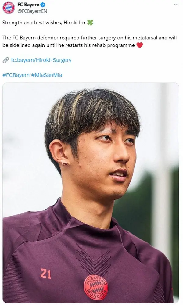 Bミュンヘン伊藤洋輝の復帰は早くても6~8週間以内…コンパニー監督が「十分な時間と安静を」と説明