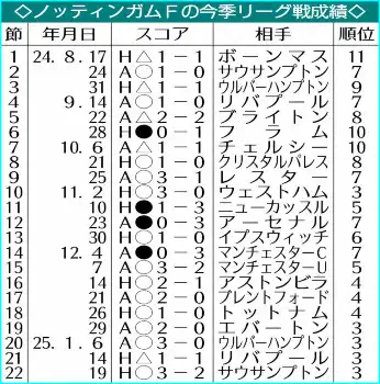 コンパクトな守備からボールを奪うと、1メートル91のFWウッドが前線でボールを収め、自身も自己最多に並ぶ14得点を挙げる。マンチェスターU育ちのエランガ、チェルシー育ちのハドソンオドイら加入2年目のアタッカー陣も才能も覚醒させ、ここまで18試合で先制点を奪い、反撃に出た相手をカウンターで仕留める好循環。開幕前の目標勝ち点は“残留安全圏”の40だったが、16試合を残して44を稼ぎ、守護神セルスは「もう少し高い目標を見られる」と笑った。