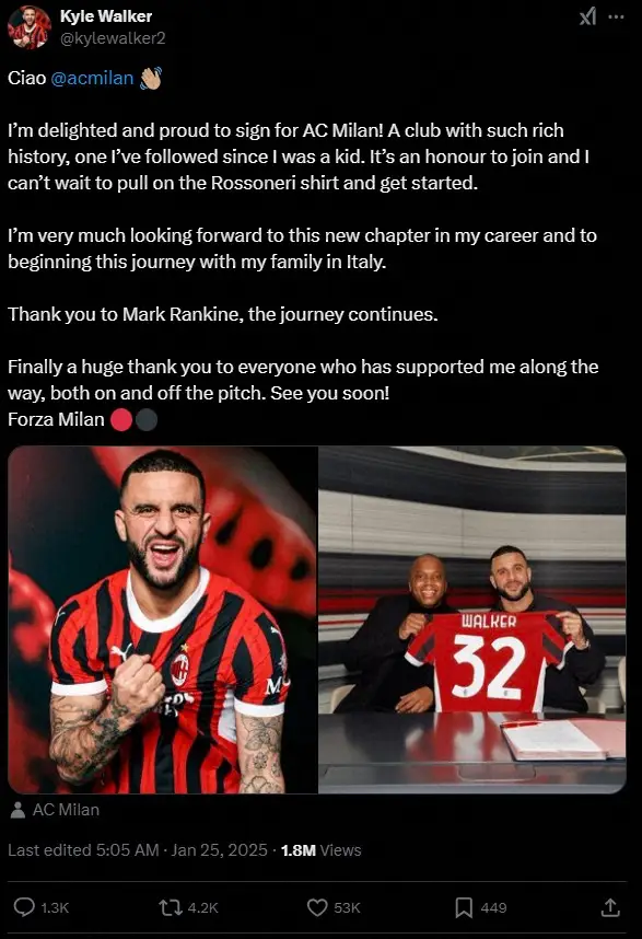 マンチェスターCのプレミアリーグ4連覇を喜ぶウォーカー(ロイター) マンC退団希望のDFウォーカーがACミランへレンタル移籍 ベッカムと同じ背… ギャラリーで見る この記事のフォト 2025年01月25日の画像一覧 もっと見る 2025年01月25日の画像をもっと見る