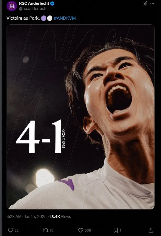 ベルギー1部 アンデルレヒト4ー1メヘレン ( 2025年1月26日 )