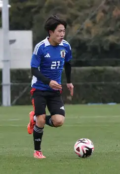 08年10月のUAE戦、日本代表デビューを先発出場で飾った岡崎(手前)