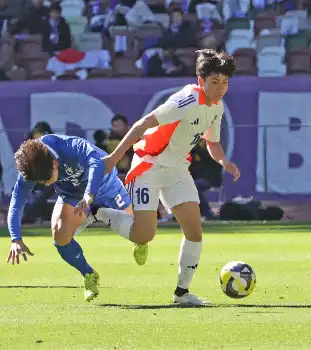 今季は柏のトップチームのキャンプに参加。12日からはU―17日本代表としてパラグアイ遠征にも参加する。本職は右サイドバックだが、この日は左サイドバックで先発して、左MFや右MFでもプレー。スタンドでは28年ロサンゼルス五輪を目指す日本代表の大岩剛監督も視察していた。長南にとってロス五輪世代は4学年上だが「ロス五輪に出たい気持ちはあります」と言い切った。