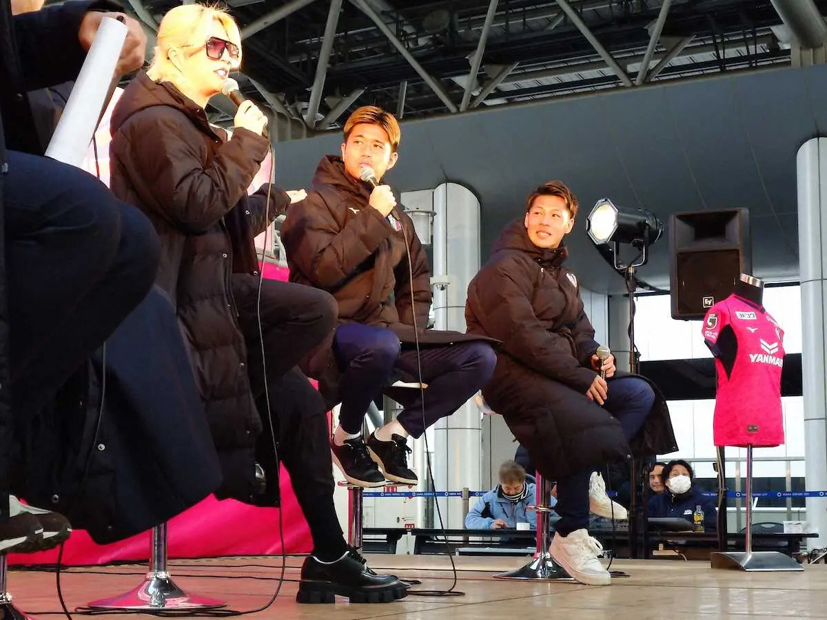 C大阪が14日に控える開幕ダービーを前に11日、大阪駅「時空の広場」で開幕直前トークショーを実施した。500人ほど集まったサポーターは「スペシャルゲスト」の登場に歓喜。投資家でタレント活動もしているローランド(32)が現れたからだ。