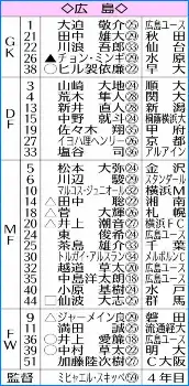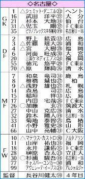 ▽名鑑の見方 チーム名の下は左から 位置、背番号、選手名、年齢(開幕時)、前所属、○=新人、△=移籍、▲=期限付き移籍、□=期限付き移籍からの復帰、☆=2種登録