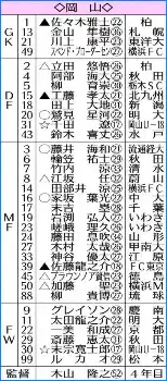 J1初昇格の岡山は10人の選手を補強した。昨季のJ2で2番目に少ない29失点を記録した堅守を誇る守備陣には柏からDF立田が加入。攻撃陣では昨季まで韓国の蔚山でプレーしていたMF江坂が3年ぶりにJの舞台に戻るなど、J1で150試合以上プレーしている2人がともにチームをけん引する。また、FC東京からはロサンゼルス五輪世代のエース候補、MF佐藤が期限付き移籍で加わった。