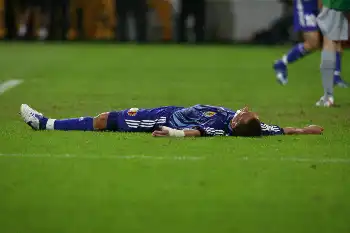 ブラジルに1―4で敗退が決定した試合後、中田氏はピッチに大の字に倒れ込み、約10分間動かなかった。