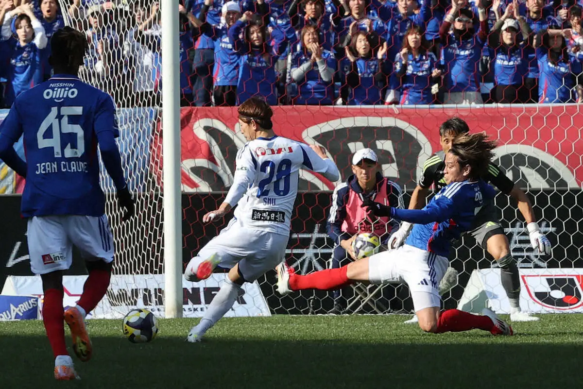 <横浜M・新潟>前半、ゴールを決め喜ぶ新潟・太田(左)(撮影・西海健太郎) Photo by スポニチ 新潟が横浜Mと1―1で開幕戦ドロー 太田が先制点 樹森監督体制で初の勝ち点 ギャラリーで見る この記事のフォト 2025年02月15日の画像一覧 もっと見る 2025年02月15日の画像をもっと見る