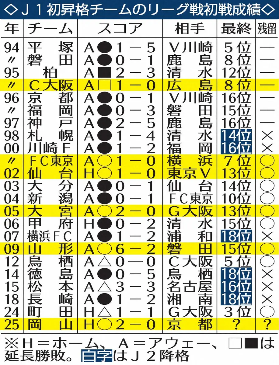 <岡山・京都>J1初勝利し、サポーターと記念写真に納まる岡山イレブン(撮影・長嶋 久樹) Photo by スポニチ 岡山がJ1初昇格初戦を快勝!!残留100%の吉兆だ DF田上「歴史的な日を勝利… ギャラリーで見る この記事のフォト 2025年02月16日の画像一覧 もっと見る 2025年02月16日の画像をもっと見る