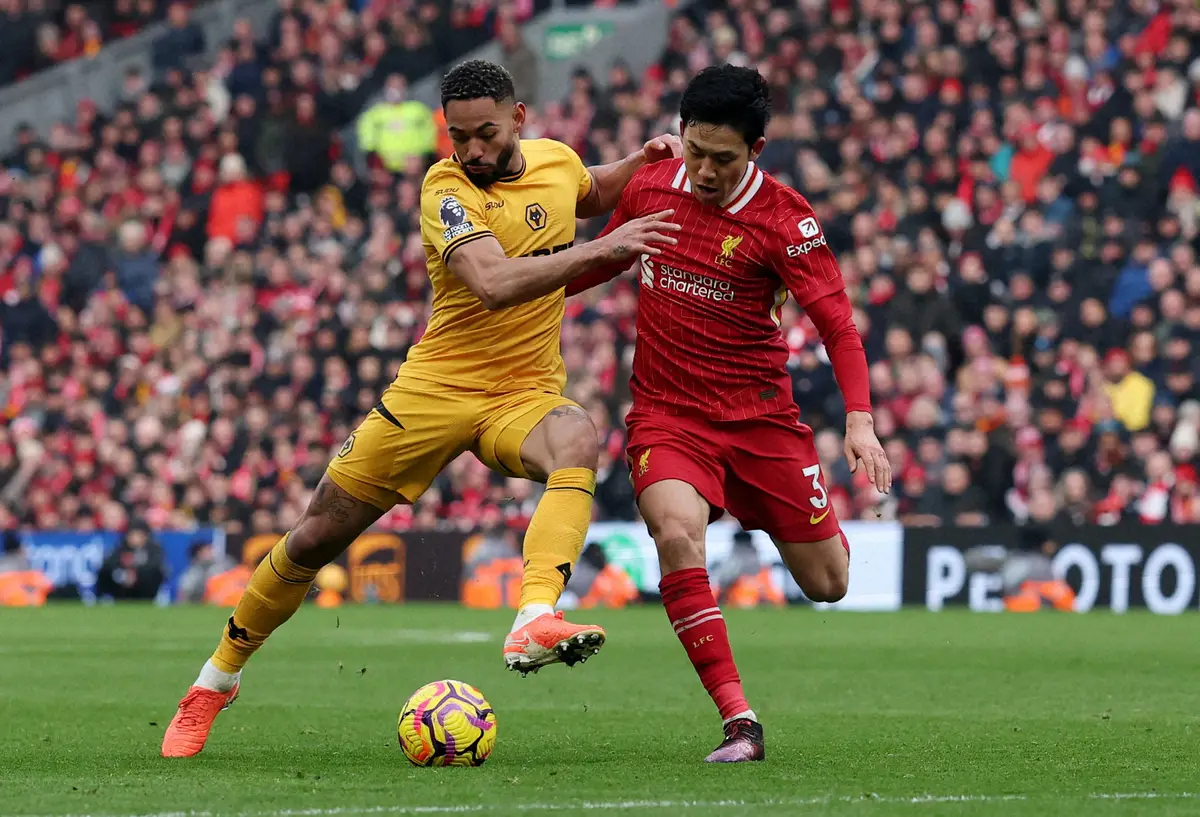 イングランド・プレミアリーグ首位リバプールは16日、本拠ウルバーハンプトン戦に2ー1と勝利。日本代表MF遠藤航(32)は2ー1の後半26分から途中出場。“クローザー”としての役目をきっちり果たし逃げ切り勝ちに貢献。前日勝利した2位アーセナルとの勝ち点差7をキープした。