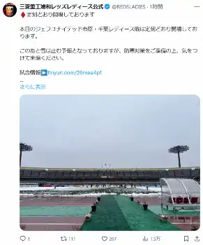 必死の雪かき! WEリーグ三菱重工浦和VS千葉がナイター開催「積もったの?」「駒場なの?」驚きの声