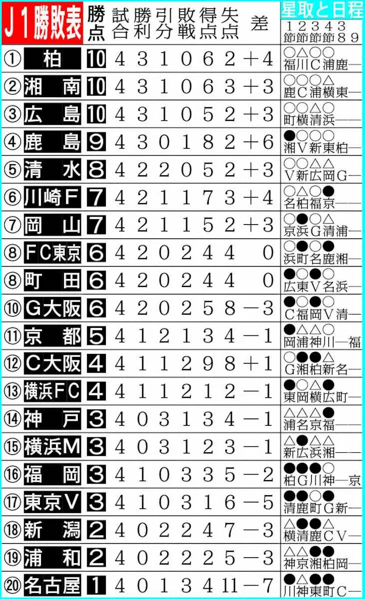 J1勝敗表