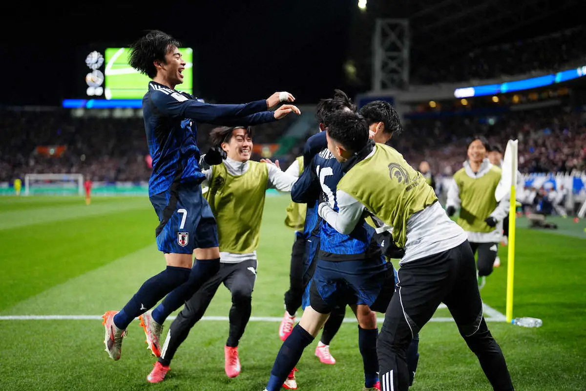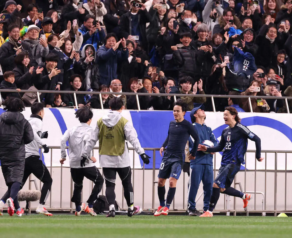 <W杯アジア最終予選 日本・バーレーン>後半、鎌田ゴール(撮影・小海途 良幹)