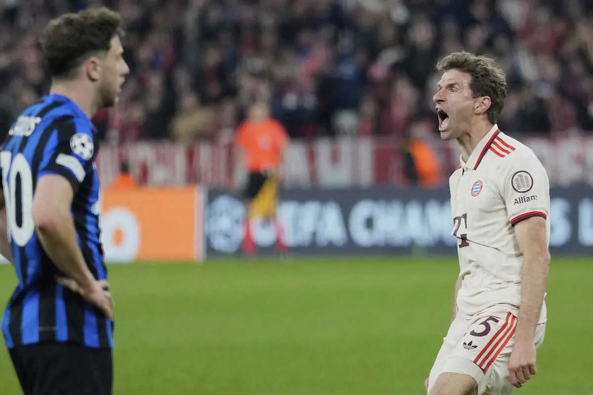 <Bミュンヘン×インテル・ミラノ>後半に決勝ゴールを決めたインテルのフラッテージ(中央)は上半身裸になって喜ぶ(AP) Photo by AP 【欧州CL】インテルが敵地先勝!終盤突き放しバイエルンのCL本拠無敗を22… ギャラリーで見る この記事のフォト 2025年04月09日の画像一覧 もっと見る 2025年04月09日の画像をもっと見る