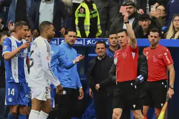 エムバペ“危険すぎるタックル”で一発退場 レアル移籍後初 コーチ「明らかにレッド」