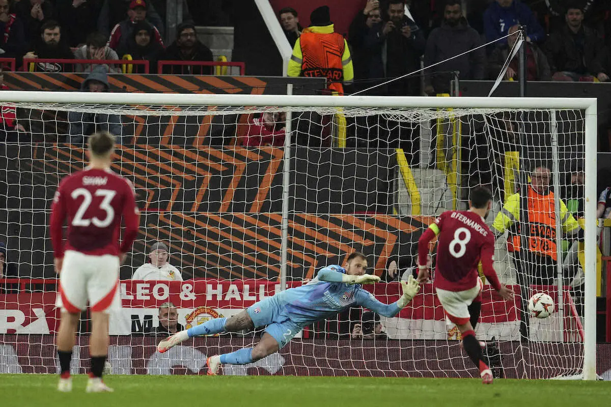 <マンチェスターU×リヨン>大逆転劇にマンUのGKオナナも大興奮(AP) Photo by AP 【EL】これぞ「夢の劇場」!延長残り7分から2点差逆転のマンU4強 マグワ… ギャラリーで見る この記事のフォト 2025年04月18日の画像一覧 もっと見る 2025年04月18日の画像をもっと見る