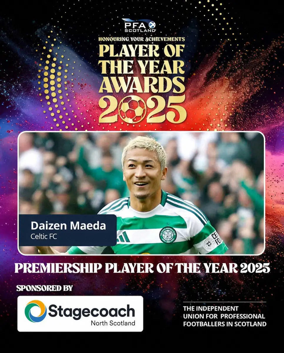 セルティック・前田 選手協会とチームのシーズンMVPをW受賞「積み重ねが報われた」