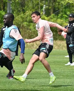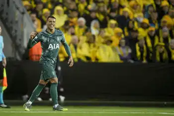 ドルトムント戦に向けた記者会見に出席したレーバークーゼンのアロンソ監督(AP)