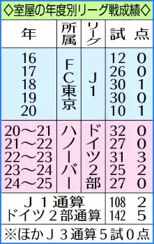 ◇室屋 成(むろや・せい)1994年(平6)4月5日生まれ、大阪府熊取町出身の31歳。青森山田高、明大を経て16年にFC東京に加入し、同年リオ五輪にも出場。20年夏に渡欧し、ドイツ2部ハノーバーで5年間プレー。日本代表は17年12月に初選出され、国際Aマッチは16試合出場。1メートル76、69キロ。利き足は右。