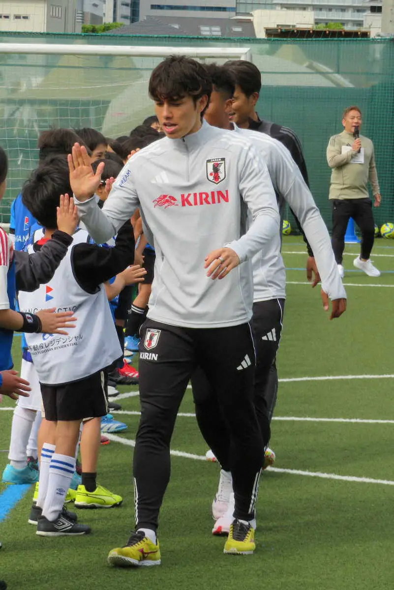 サッカーのイングランド2部リーズでリーグ優勝とプレミアリーグ昇格に貢献したMF田中碧(26)が31日、東京都内で三井不動産レジデンシャル「日本代表サッカークリニック」にMF藤田譲瑠チマ(23=シントトロイデン)らと参加した。