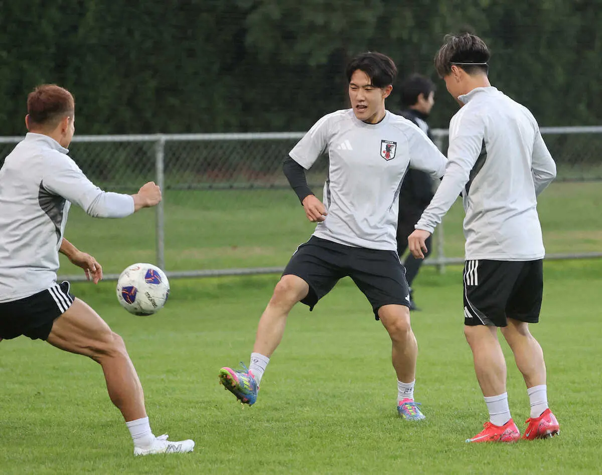 サッカー日本代表は3日、26年W杯北中米大会アジア最終予選オーストラリア戦(5日、パース)に向けて合宿2日目の練習を行い、冒頭の約30分を報道陣に公開した。初日は室内調整だった初招集組のMF佐藤龍之介(18=岡山)らも合流し、全27選手がこの日ピッチにそろった。