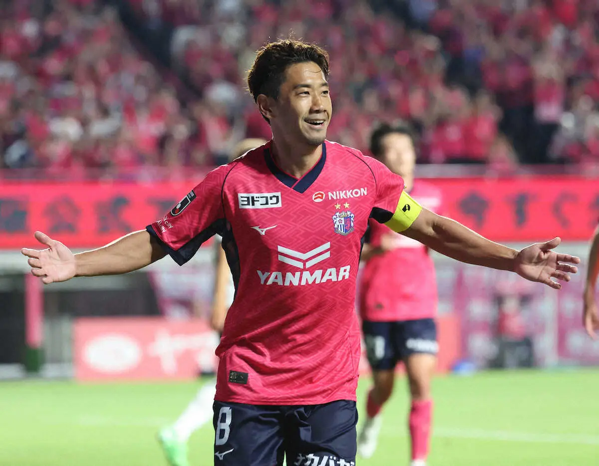 <C大阪・横浜C>後半、先制ゴールを決め両手を広げて喜ぶ香川(撮影・長嶋 久樹)