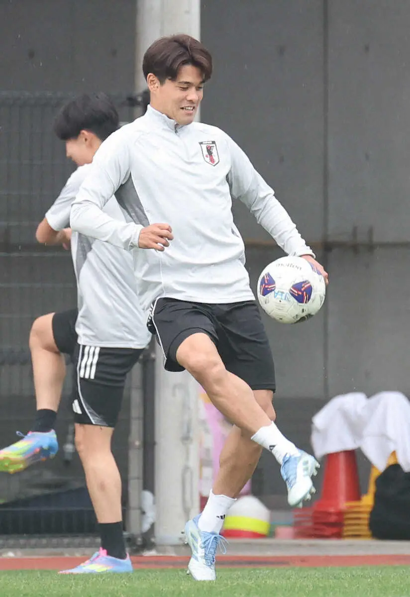 <日本代表練習>俵積田(左)らと練習する佐野海(右は長谷部コーチ)(撮影・長嶋 久樹) Photo by スポニチ 佐野海舟 約6カ月ぶりの国内試合に向け「結果が一番大事になる」「声は届… ギャラリーで見る この記事のフォト 2025年06月08日の画像一覧 もっと見る 2025年06月08日の画像をもっと見る