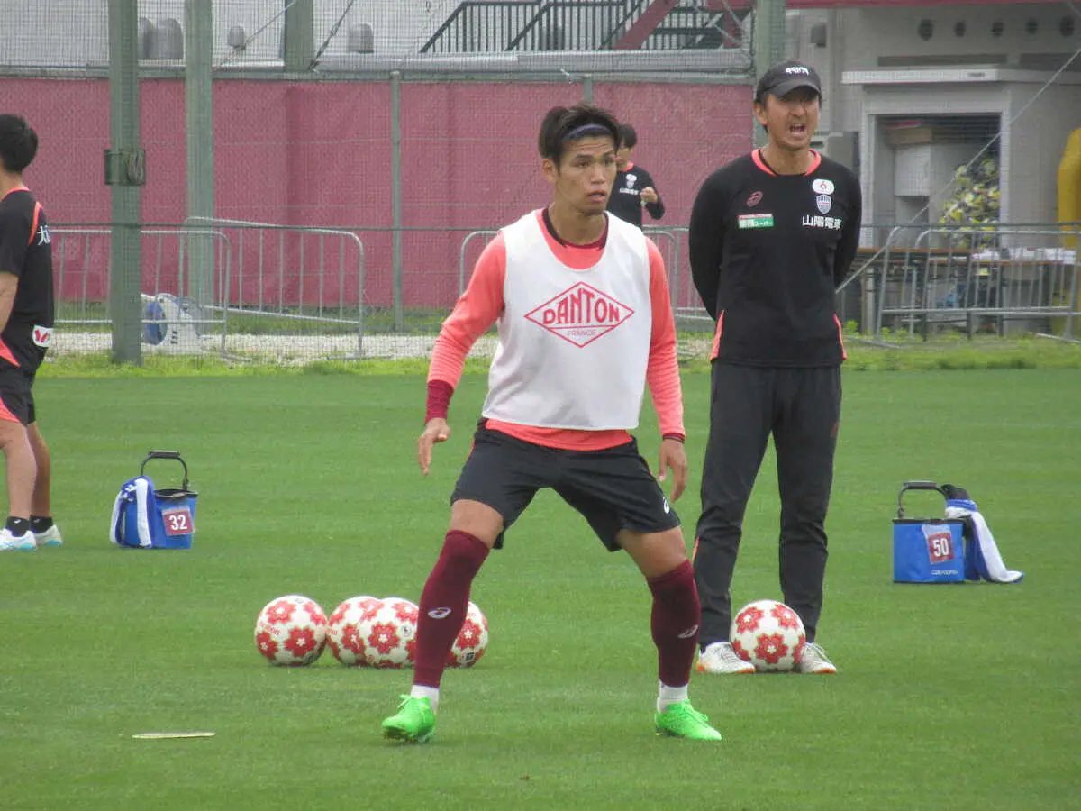 練習で汗を流す神戸MF佐々木大樹