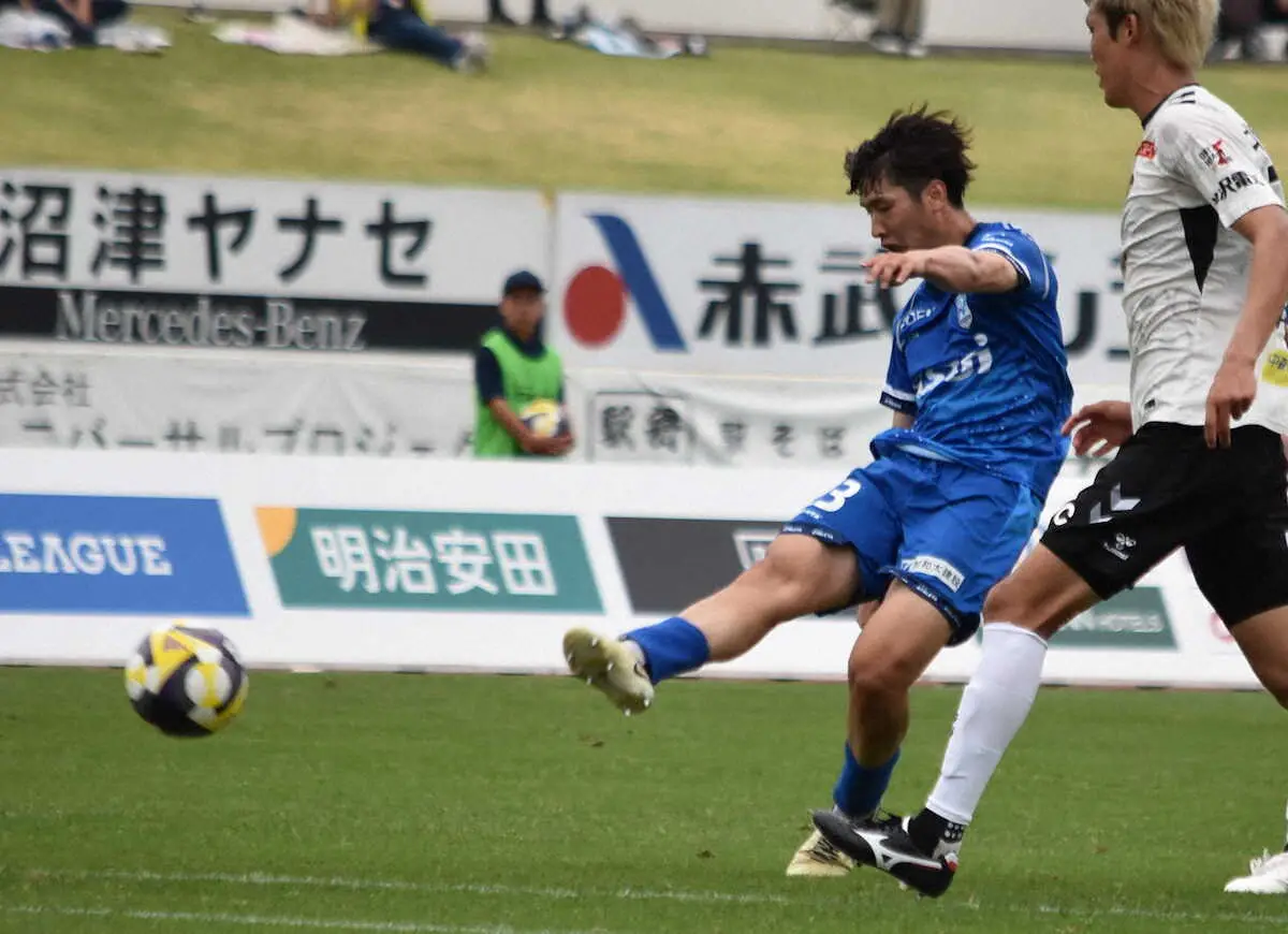 沼津デビュー戦でうれしいプロ初ゴールは、クラブのJ3通算100勝目を決定づける3点目になった。「チームも100勝目。記念すべき試合で自分も初ゴール。今後の自信になるし、成長にもつながると思う」と振り返った。