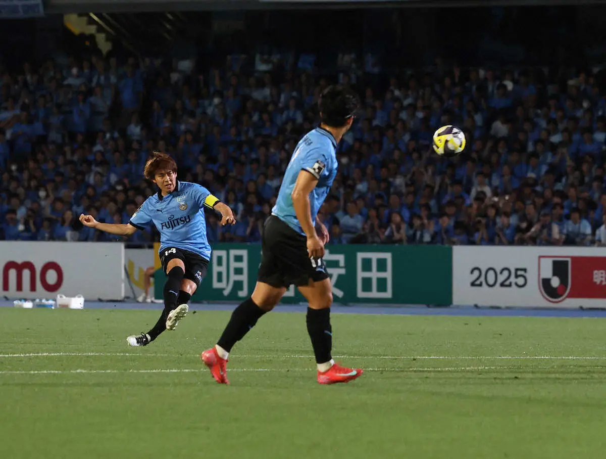 <川崎F・新潟>前半、川崎F・神田(左)はゴールを決め喜ぶ(撮影・小海途 良幹) Photo by スポニチ 攻守に躍動の川崎Fが快勝 200試合出場の脇坂FK弾に神田がJ1初得点 高井… ギャラリーで見る この記事のフォト 2025年06月25日の画像一覧 もっと見る 2025年06月25日の画像をもっと見る