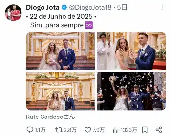 リバプールFWディオゴ・ジョタ急逝 先週挙式したばかり…幸せのSNS投稿が最後のメッセージに
