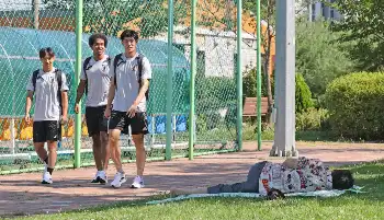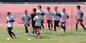 <サッカー日本代表 練習>笑顔の宇野(中)(撮影・西海健太郎)