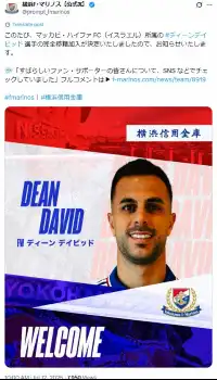 横浜M イスラエル代表FWディーン・デイビッド加入「SNSでチェックしていた」J1残留へ点取り屋獲得