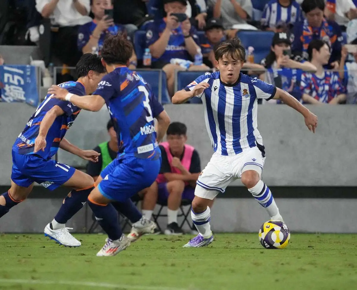 <長崎・レアル・ソシエダ>後半、ボールをキープするレアル・ソシエダ・久保(撮影・岡田 丈靖)
