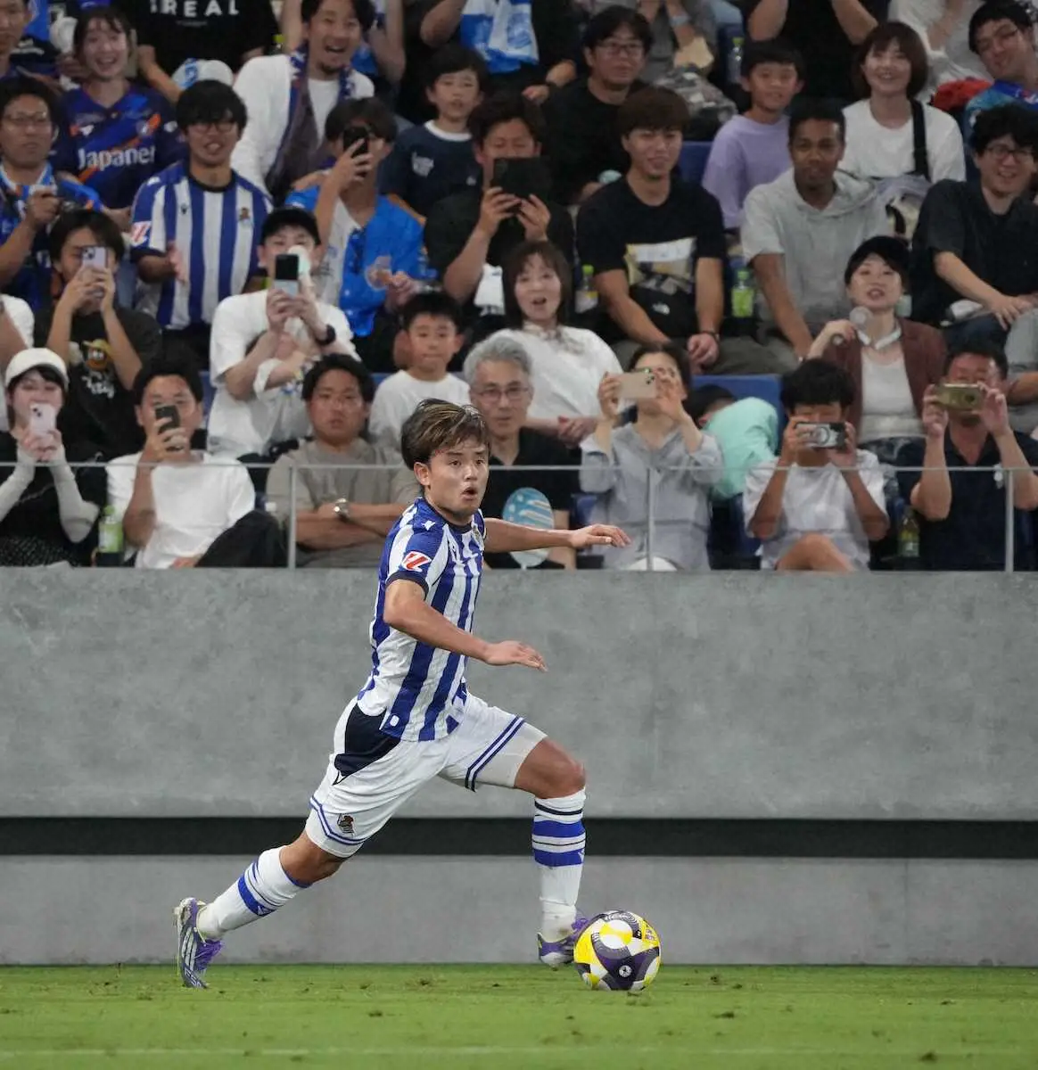 <長崎・レアル・ソシエダ>後半、ドリブルで攻め上がるレアル・ソシエダ・久保(撮影・岡田 丈靖)