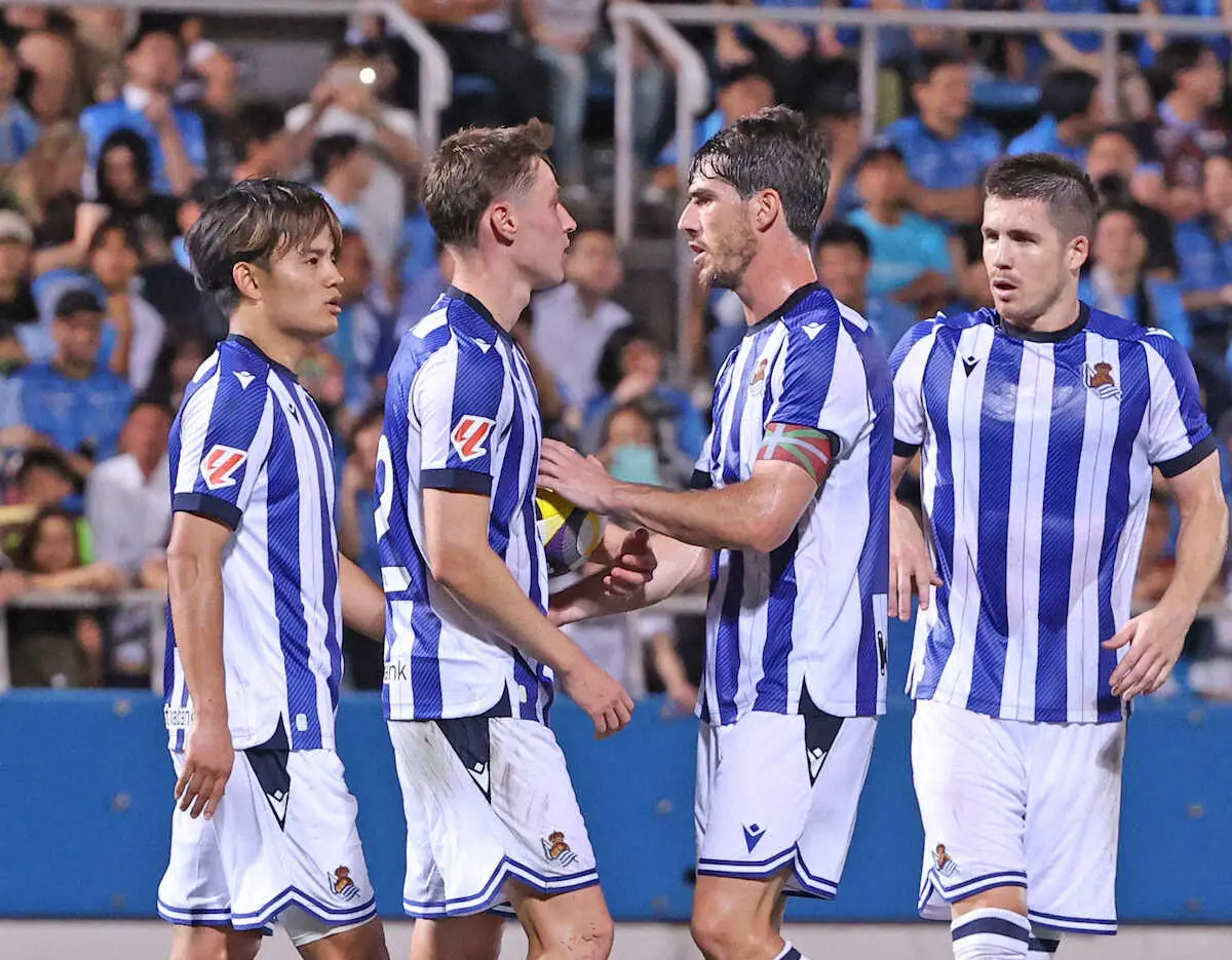 Rソシエダードは今月上旬に始動も、日本でオフを過ごした久保はチームの来日に合わせて20日に合流したばかり。翌21日のJ2長崎戦は後半開始から27分までの限定出場で、場内インタビューで「20分しか出られなくて申し訳ないと、今日見に来てくれた人たちに謝りたい」と話していた。チームとともに24日に横浜入り。今季2度目の実戦で確かな存在感を示し、調整が順調な様子をうかがわせた。イタリア1部ナポリやイングランド・プレミアリーグのエバートンからの関心が現地で報じられるなど、今夏の去就にも注目が集まる日本の至宝。来年6月開幕のW杯北中米大会まで続く長いシーズンが幕開けた。