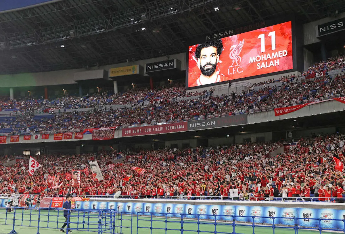リバプールは05年クラブW杯以来、約20年ぶりの来日。20度のリーグ優勝や6度の欧州CL制覇を誇る名門を一目見ようと多くの来場者が駆けつけ、この日の入場券は完売となった。