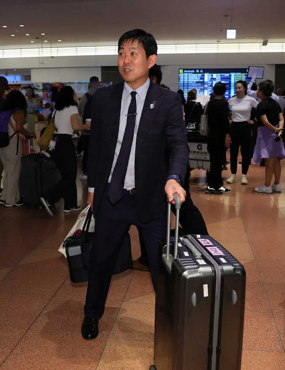 日本代表の森保監督が4日、欧州視察を終えて羽田空港に帰国した。メキシコ、米国と親善試合を行う9月の米国遠征メンバーについて「6月に休ませた選手は選ぶというのが基本的な考え。そこから6月、E―1、今回視察したメンバーもテーブルに上げて考えたい」と説明。W杯アジア最終予選の3月シリーズ以来、半年ぶりにベストメンバーを編成する方針を示した。
