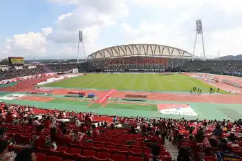 雷の影響で2時間近く中断、J2熊本―藤枝戦は前半7分30秒から再開、午後9時以降は鳴り物応援禁止