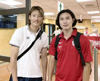 ルアーブルでのデビュー後、モナコ・南野(右)と写真に納まる瀬古